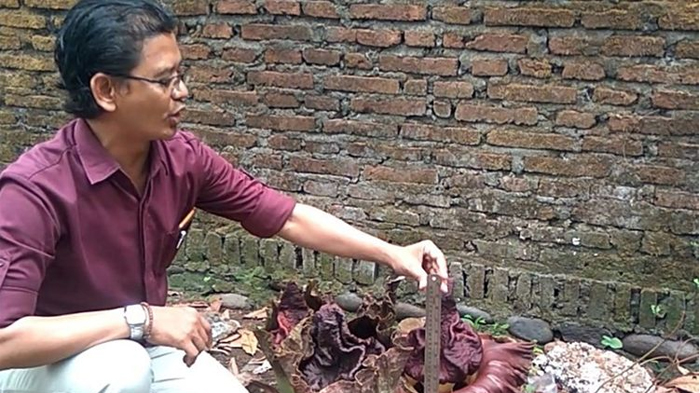 Warga Kelurahan Karangklesem, Kecamatan Purwokerto Selatan, Kabupaten Banyumas, Jawa Tengah, dikejutkan dengan penemuan bunga ini di pekarangan rumah.